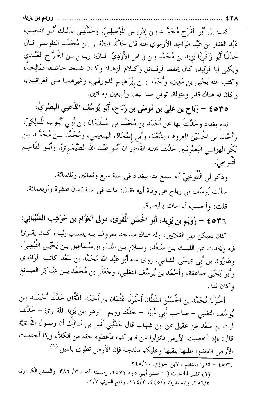 4536- رويم بْن يَزِيد، أَبُو الْحَسَن المقرئ، مولى العوام بْن حوشب الشيباني [1] :