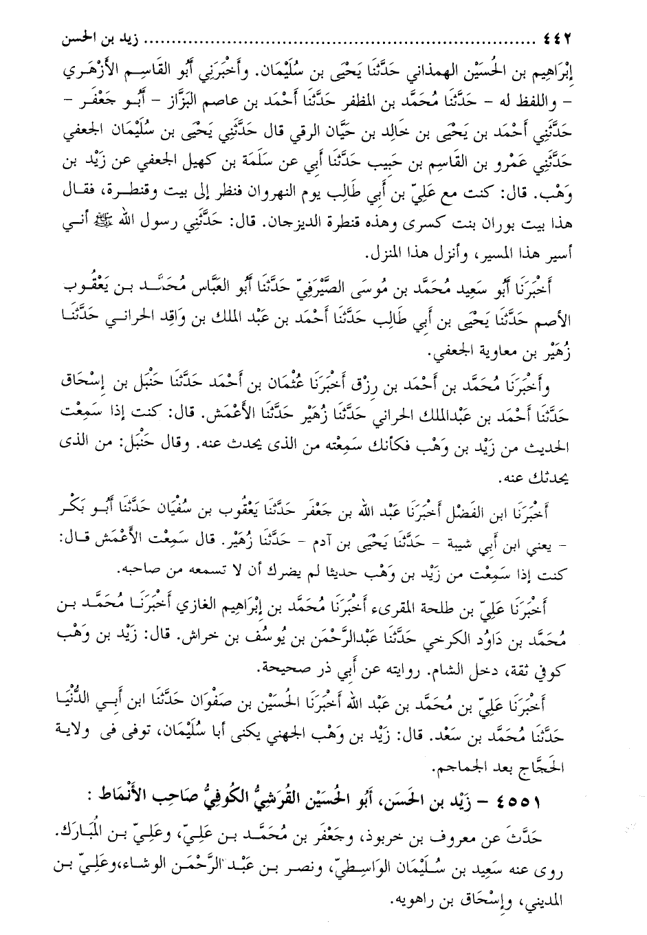 4551- زيد بْن الْحَسَن، أَبُو الْحُسَيْن الْقُرَشِيّ الكوفي صاحب الأنماط: