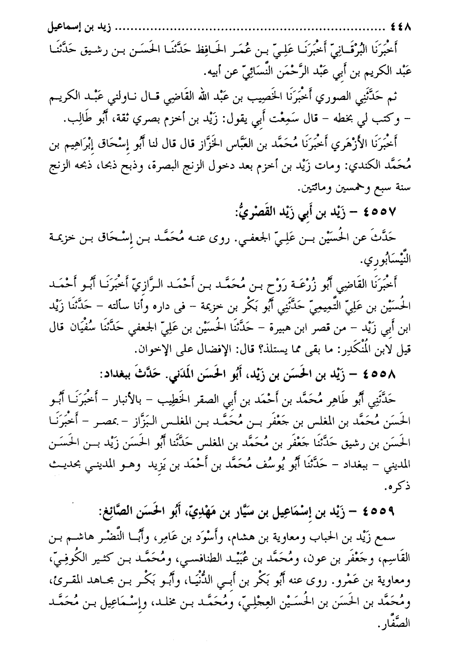 4559- زيد بْن إِسْمَاعِيل بْن سيار بْن مَهْدِيّ، أَبُو الْحَسَن الصائغ: