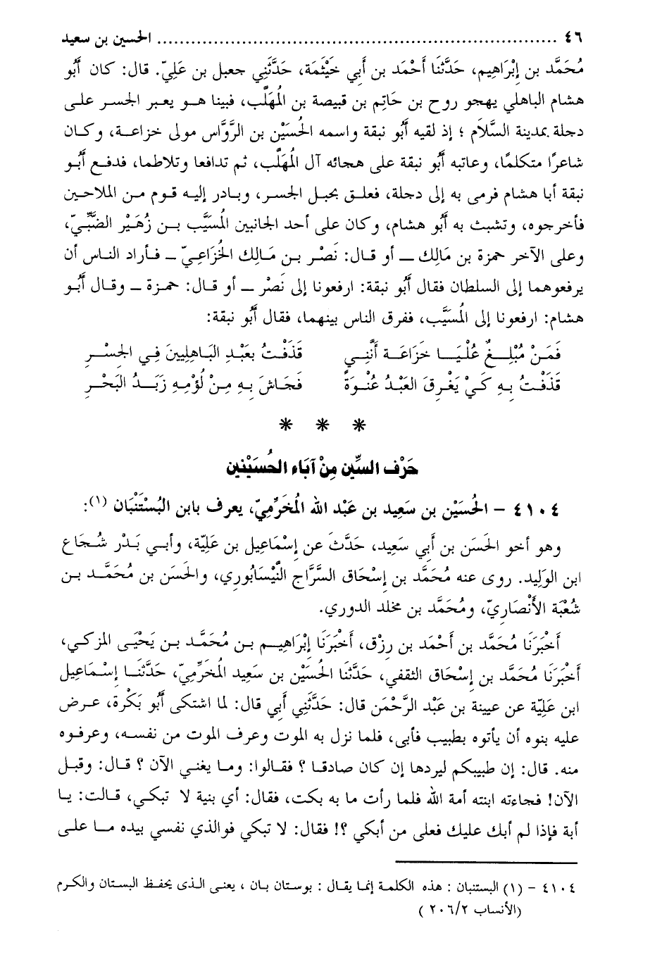 4104- الْحُسَيْن بن سعيد بن عَبْد اللَّهِ المخرمي، يعرف بابن البستنبان [1] :