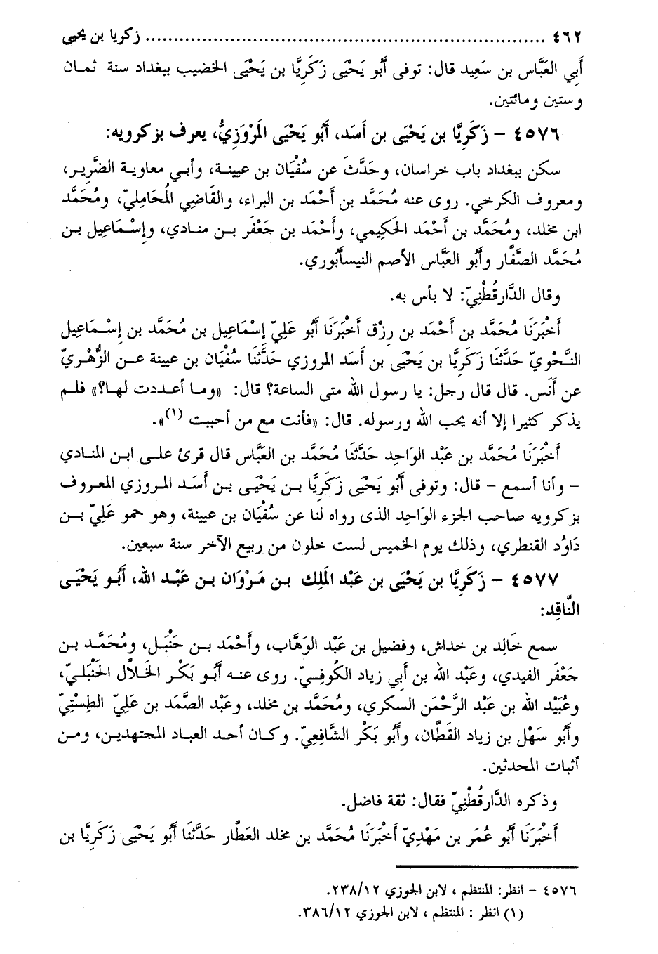 4577- زَكَرِيَّا بْن يَحْيَى بْن عَبْد الملك بْن مَرْوَان بْن عَبْد اللَّهِ، أَبُو يَحْيَى الناقد:
