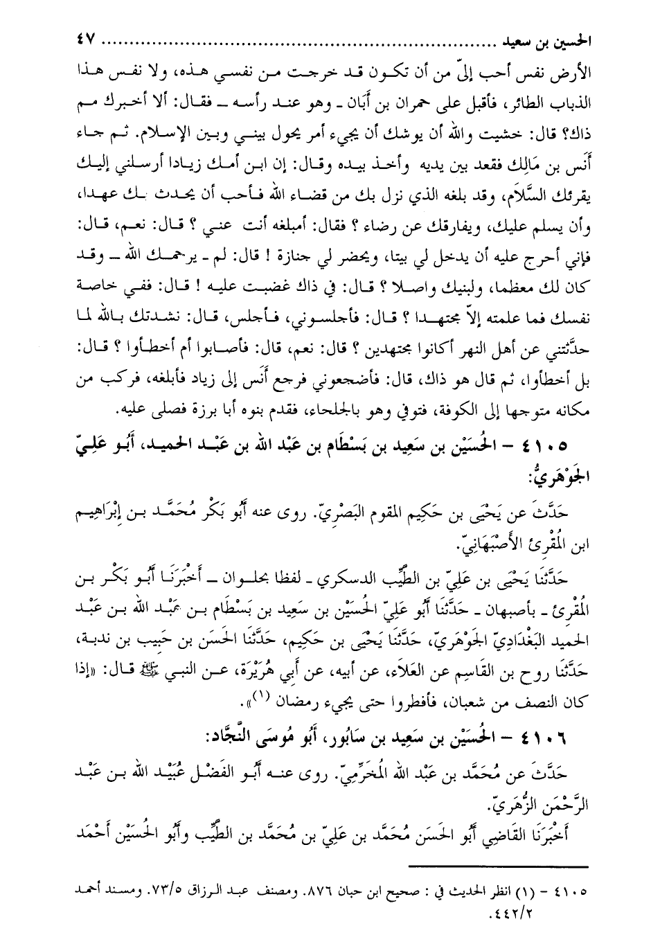 . 4106- الْحُسَيْن بْن سَعِيد بْن سابور، أَبُو مُوسَى النَّجَّاد: