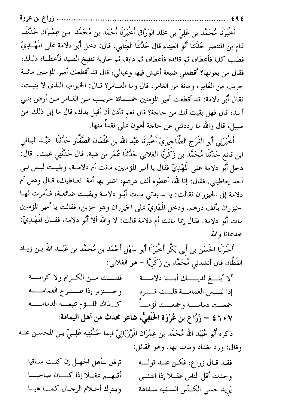 4607- زراع بْن عروة الحنفي، شاعر محدث من أَهْل اليمامة: