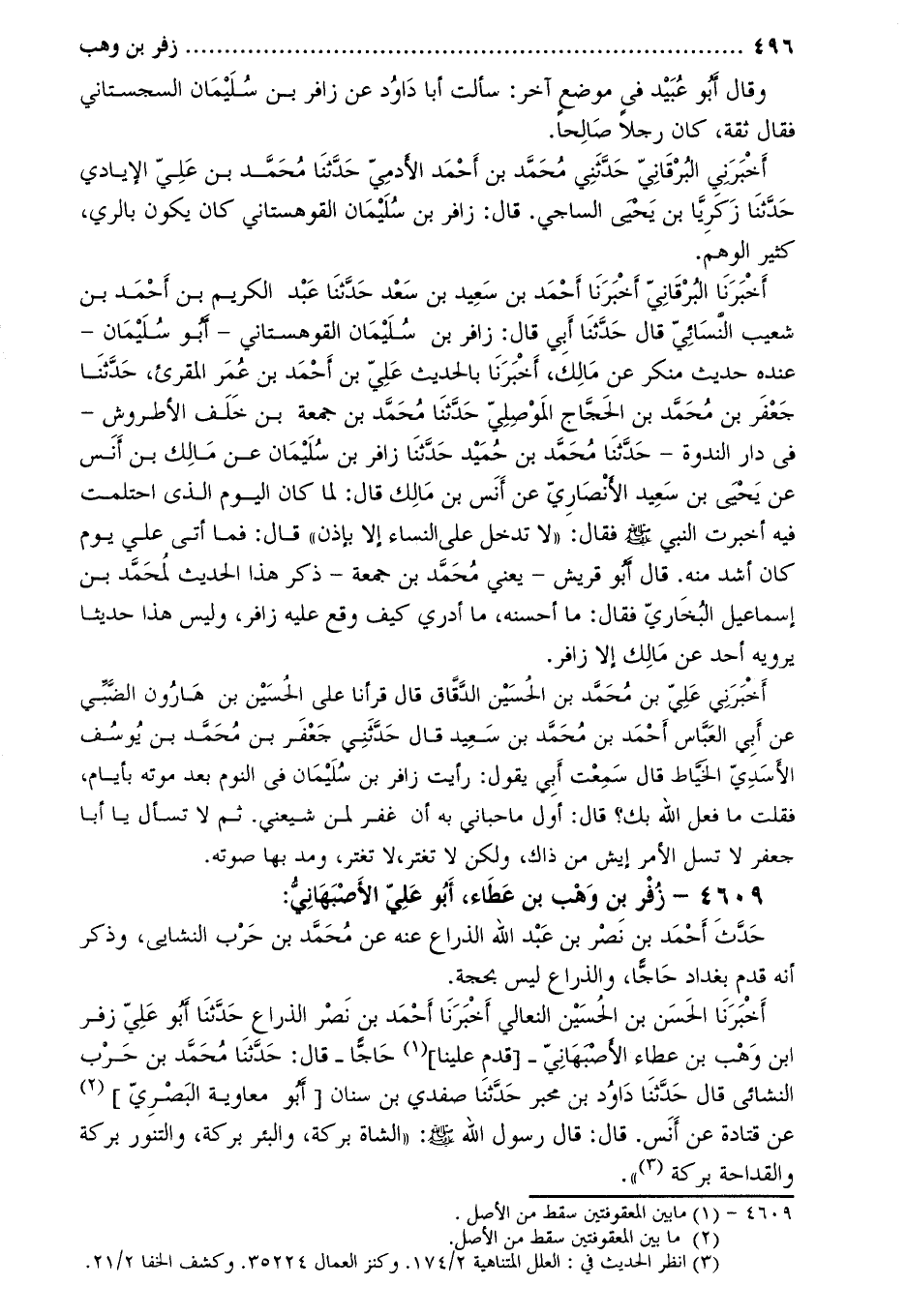 4609- زفر بْن وَهب بْن عطاء، أَبُو علي الأَصْبَهَانِيّ: