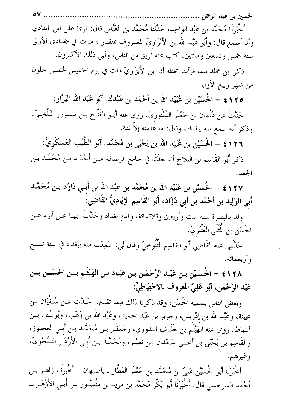 4128- الْحُسَيْن بن عَبْد الرَّحْمَنِ بن عباد بن الهيثم بن الْحَسَن بن عَبْد الرَّحْمَنِ، أَبُو عَلِيّ المعروف بالاحتياطي: