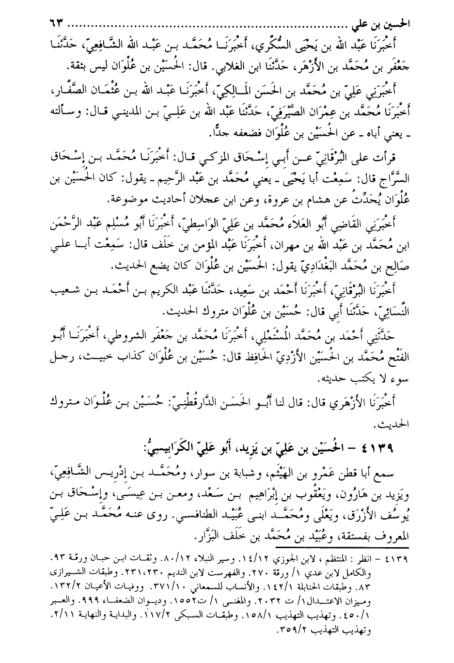 4139- الْحُسَيْن بن عَلِيّ بن يزيد، أَبُو عَلِيّ الكرابيسي [1] :