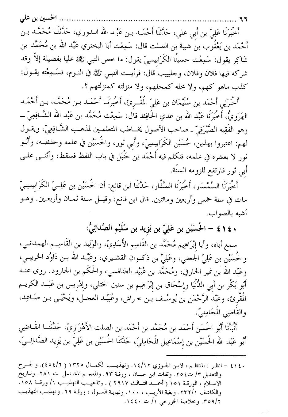 4140- الْحُسَيْن بن عَلِيّ بن يزيد بن سليم الصدائي [1] :