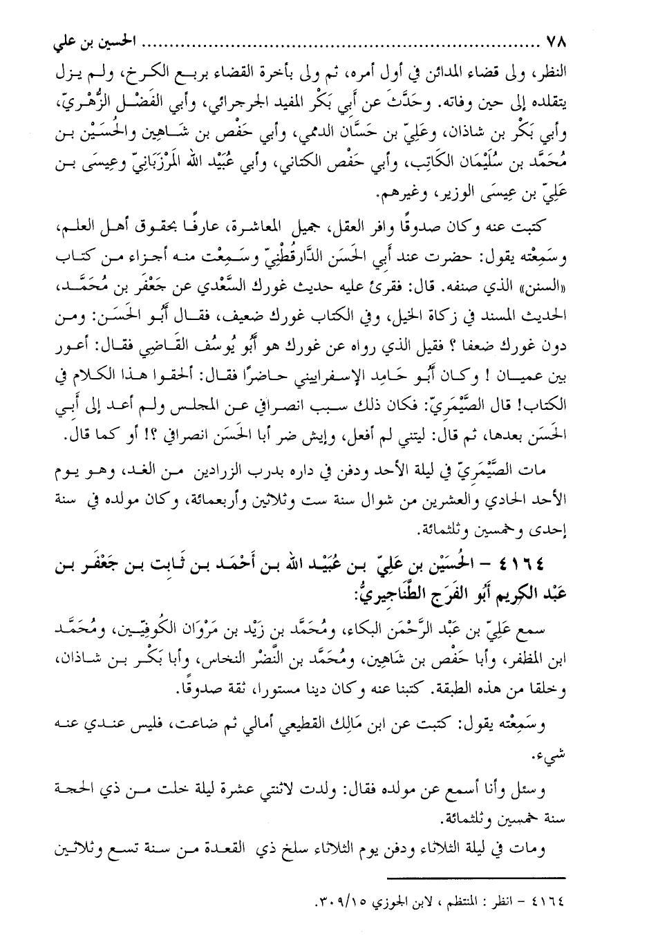 4164- الْحُسَيْن بن عَلِيّ بن عُبَيْد اللَّهِ بن أَحْمَدَ بْنِ ثابت بن جَعْفَر بن عبد الكريم أَبُو الفرج الطناجيري [1] :