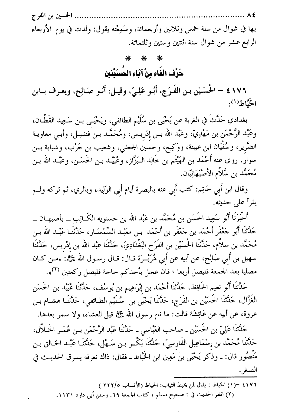 4176- الْحُسَيْن بن الفرج، أَبُو عَلِيّ، وقيل: أَبُو صالح، ويعرف بابن الخياط [1] :
