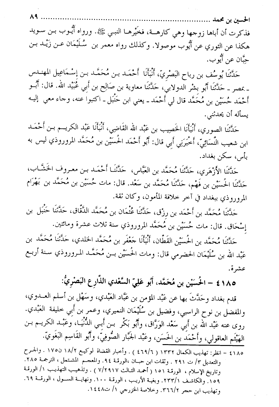 4185- الْحُسَيْن بن مُحَمَّد، أَبُو عَلِيّ السعدي الذارع البصري [1] :