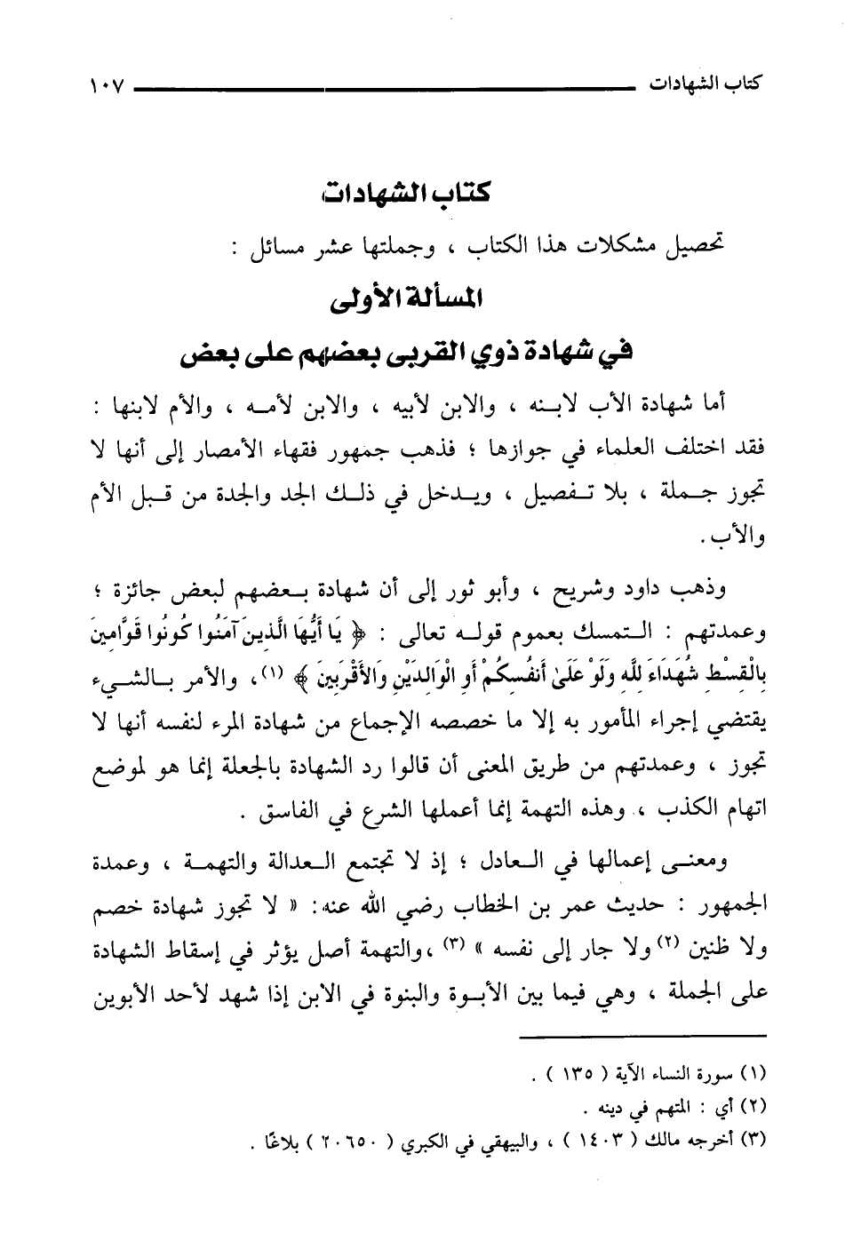 المسألة الأولى في شهادة ذوي القربى بعضهم على بعض