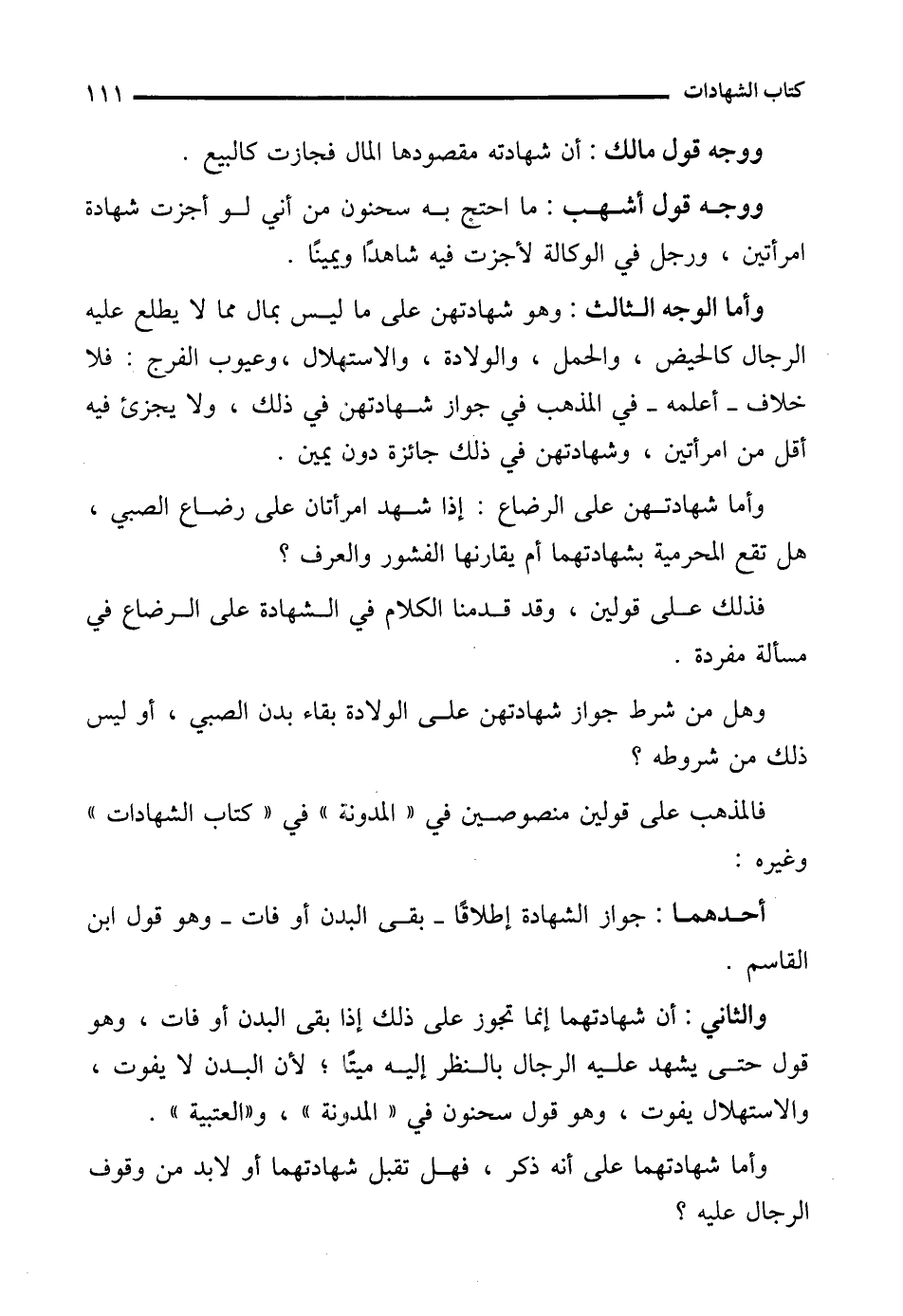 وأما الوجه الثالث: وهو شهادتهن على ما ليس بمال مما لا يطلع عليه الرجال كالحيض، والحمل، والولادة، والاستهلال , وعيوب الفرج: فلا خلاف -أعلمه- في المذهب في جواز شهادتهن في ذلك, ولا يجزيء فيه أقل من امرأتين، وشهادتهن في ذلك جائزة دون يمين.
