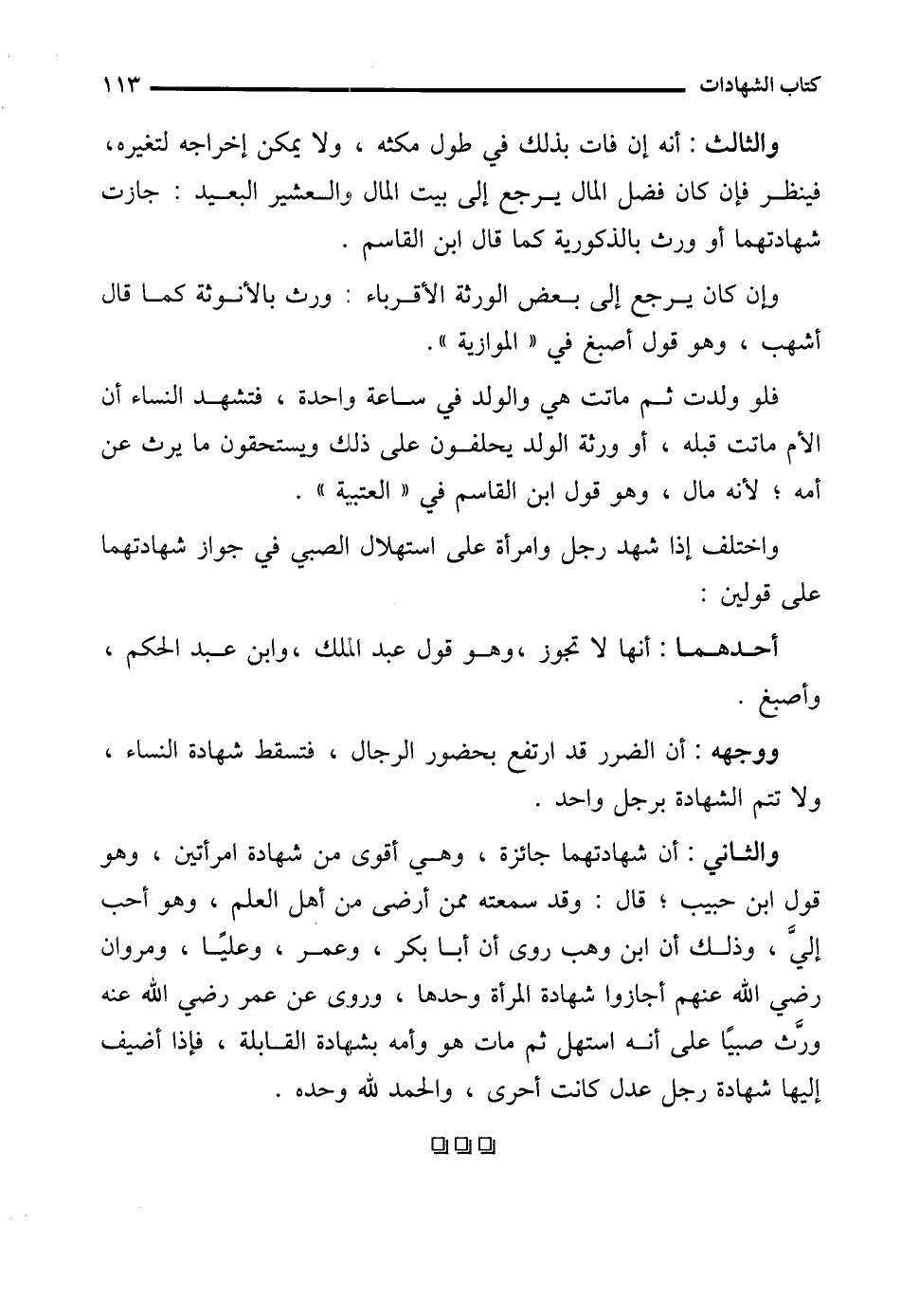 والثاني: أن شهادتهما جائزة، وهي أقوى من شهادة امرأتين, وهو قول ابن حبيب؛ قال: وقد سمعته ممن أرضى من أهل العلم ,وهو أحب إليَّ، وذلك أن ابن وهب روى أن أبا بكر، وعمر, وعليًا, ومروان رضي الله عنهم أجازوا شهادة المرأة وحدها، وروى عن عمر رضي الله عنه ورَّث صبيًا على أنه استهل ثم مات هو وأمه بشهادة القابلة, فإذا أضيف إليها شهادة رجل عدل كانت أحرى، والحمد لله وحده.