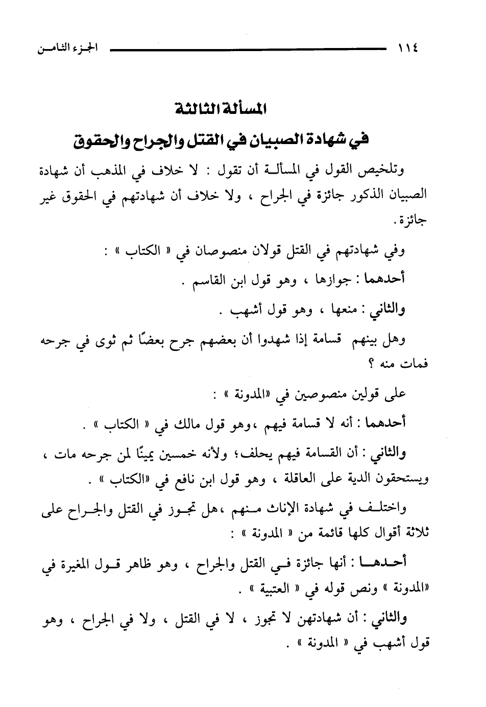 المسألة الثالثة في شهادة الصبيان في القتل والجراح والحقوق