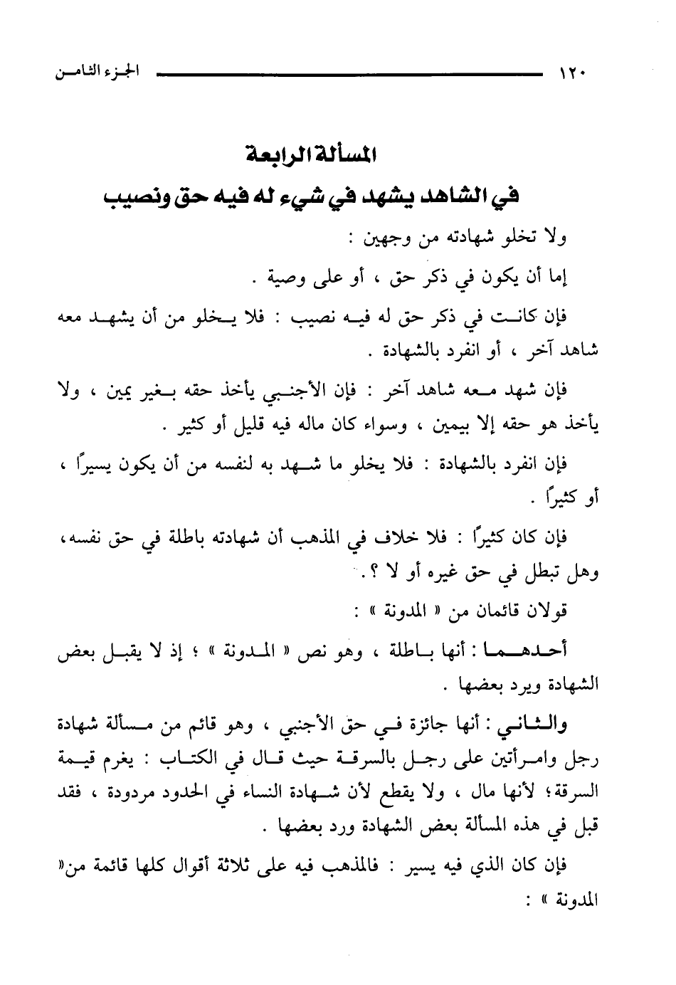 المسألة الرابعة في الشاهد يشهد في شيء له فيه حق ونصيب