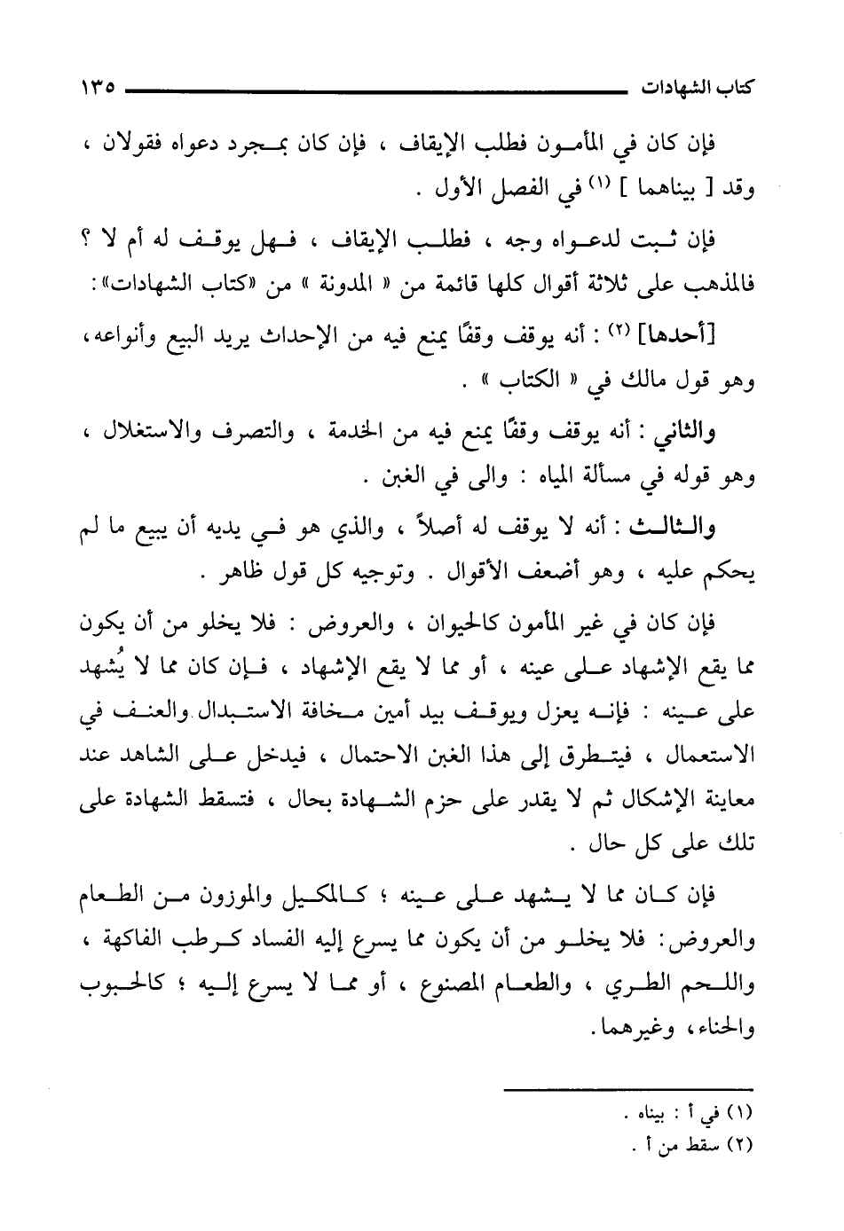 فإن ثبت لدعواه وجه، فطلب الإيقاف، فهل يوقف له أم لا؟ فالمذهب على ثلاثة أقوال كلها قائمة من "المدونة" من "كتاب الشهادات":
