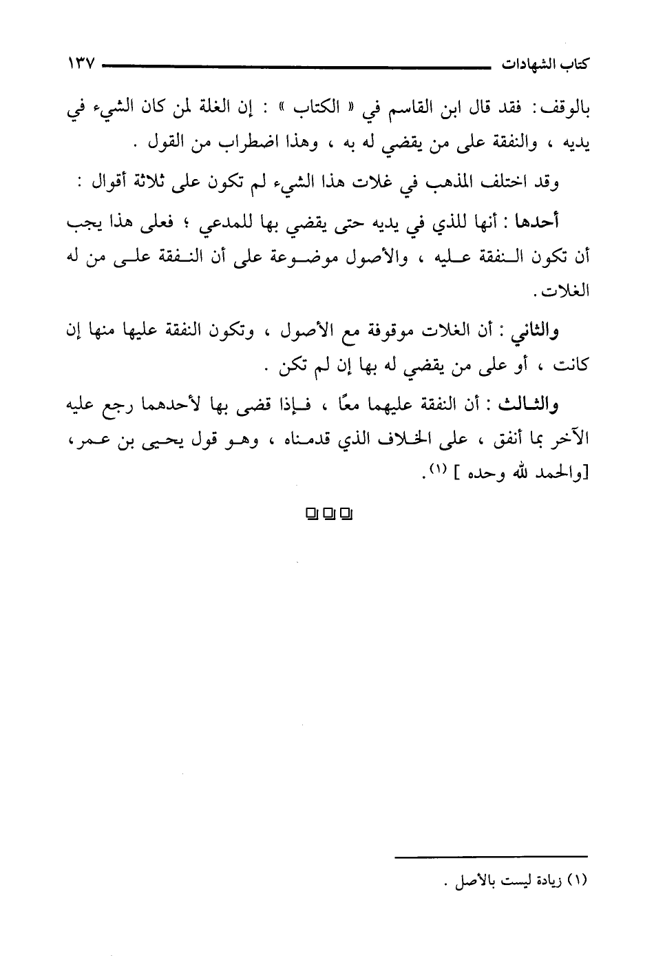 وقد اختلف المذهب في غلات هذا الشيء لم تكون على ثلاثة أقوال: