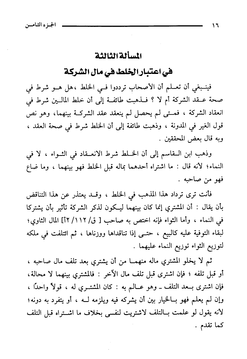 المسألة الثالثة في اعتبار الخلط في مال الشركة