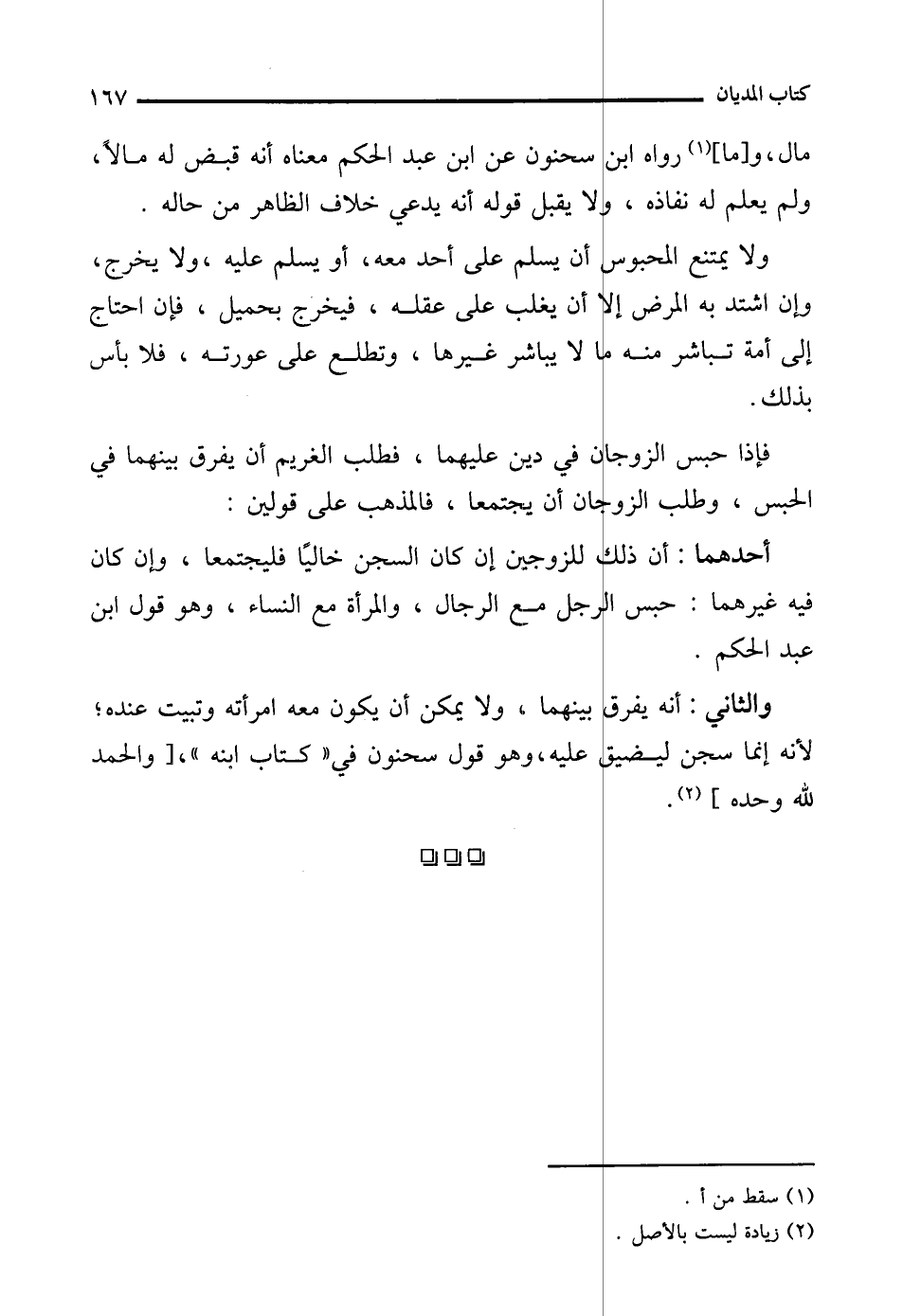 فإذا حبس الزوجان في دين عليهما، فطلب الغريم أن يفرق بينهما في الحبس، وطلب الزوجان أن يجتمعا، فالمذهب على قولين: