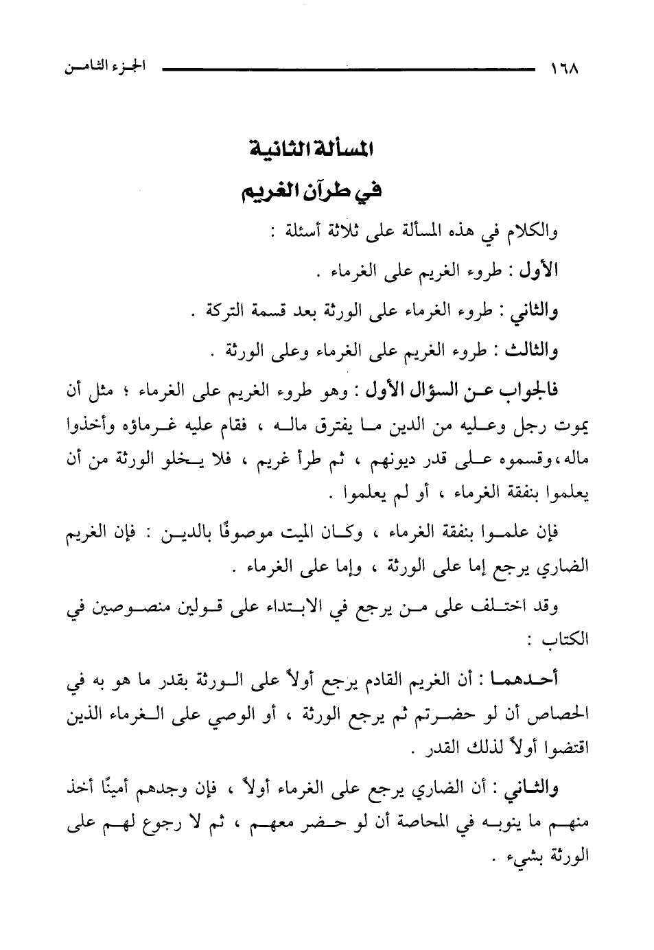 المسألة الثانية في طرآن الغريم