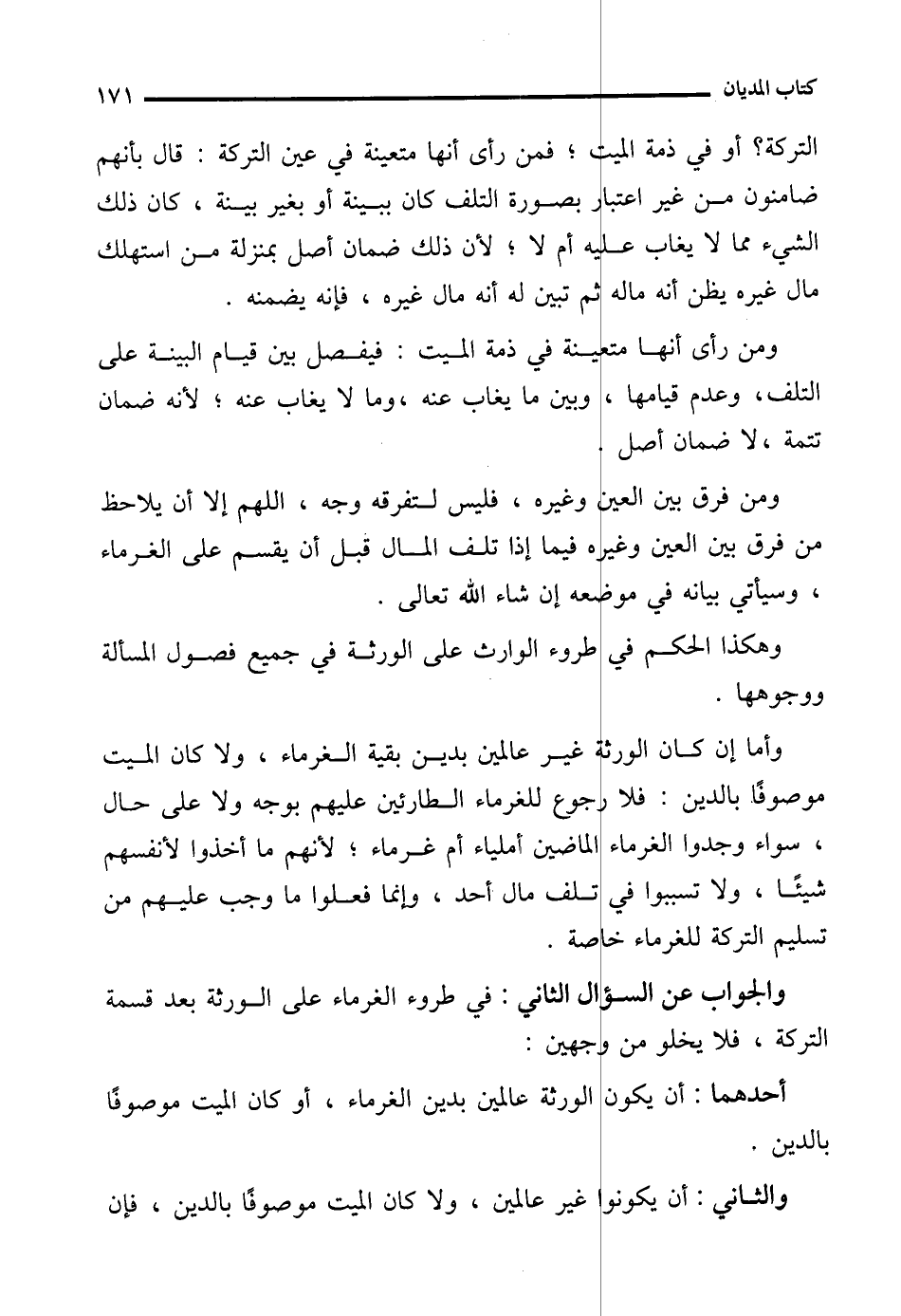 والجواب عن السؤال الثاني: في طروء الغرماء على الورثة بعد قسمة التركة، فلا يخلو من وجهين: