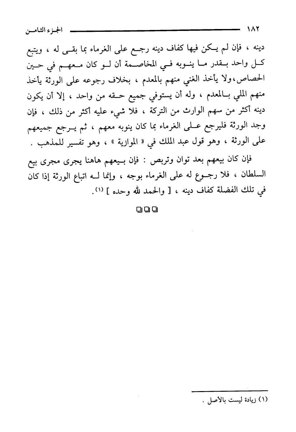 فإن كان بيعهم بعد توان وتربص: فإن بيعهم هاهنا يجرى مجرى بيع السلطان، فلا رجوع له على الغرماء بوجه، وإنما له اتباع الورثة إذا كان في تلك الفضلة كفاف دينه، [والحمد لله وحده] (¬1).