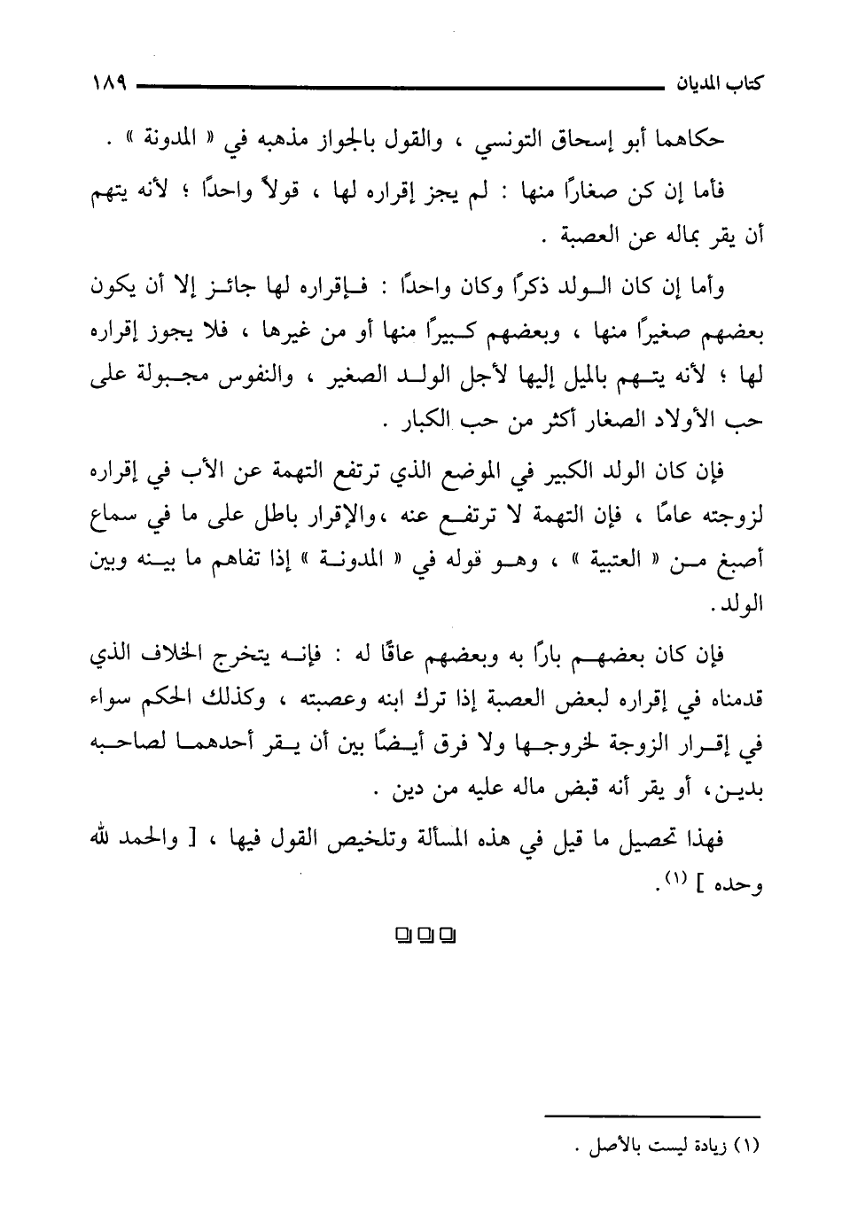 فهذا تحصيل ما قيل في هذه المسألة وتلخيص القول فيها، [والحمد لله وحده] (¬1).