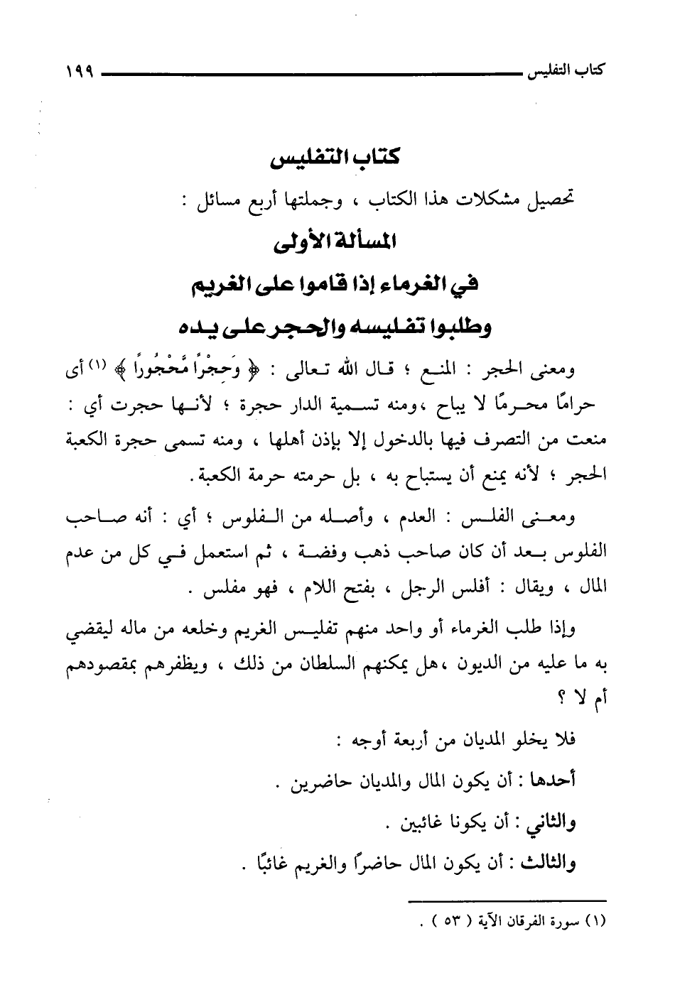 المسألة الأولى في الغرماء إذا قاموا على الغريم وطلبوا تفليسه والحجر على يده