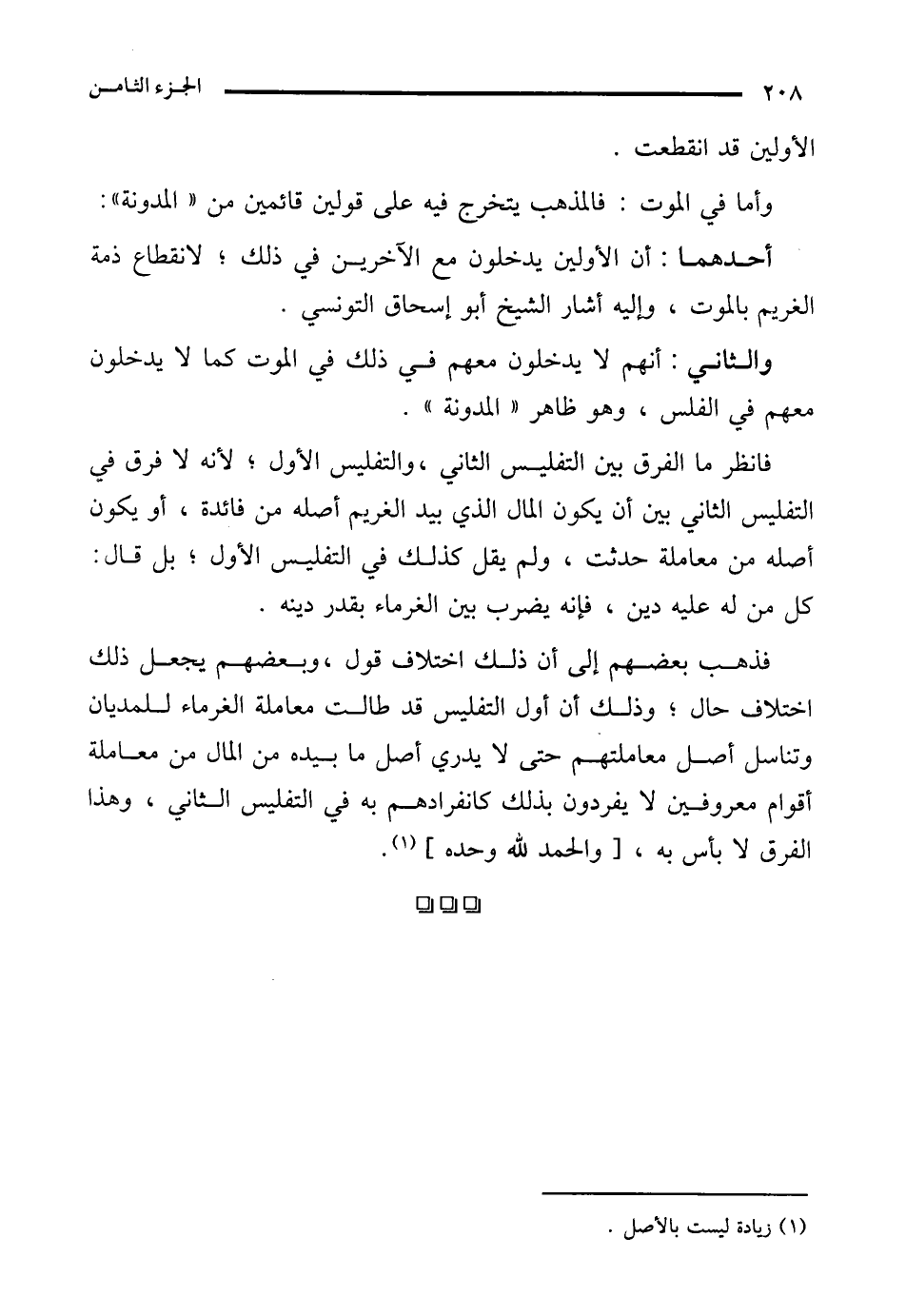 والثاني: أنهم لا يدخلون معهم في ذلك في الموت كما لا يدخلون معهم في الفلس، وهو ظاهر "المدونة".