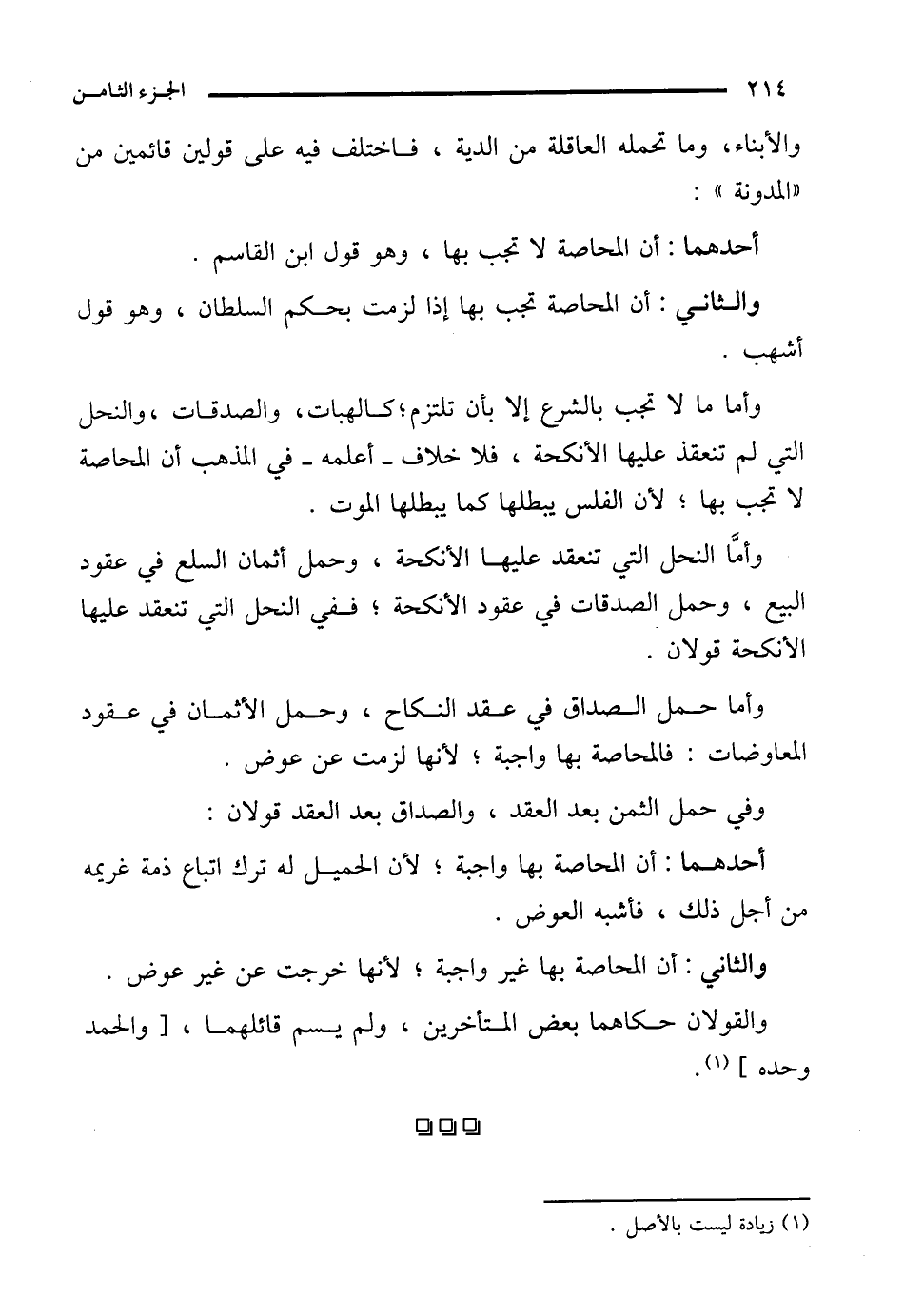 وأمَّا النحل التي تنعقد عليها الأنكحة، وحمل أثمان السلع في عقود البيع، وحمل الصدقات في عقود الأنكحة؛ ففي النحل التي تنعقد عليها الأنكحة قولان.