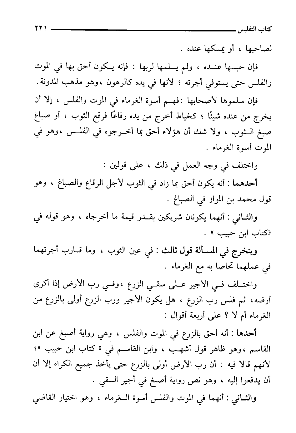 والثاني: أنهما في الموت والفلس أسوة الغرماء، وهو اختيار القاضي