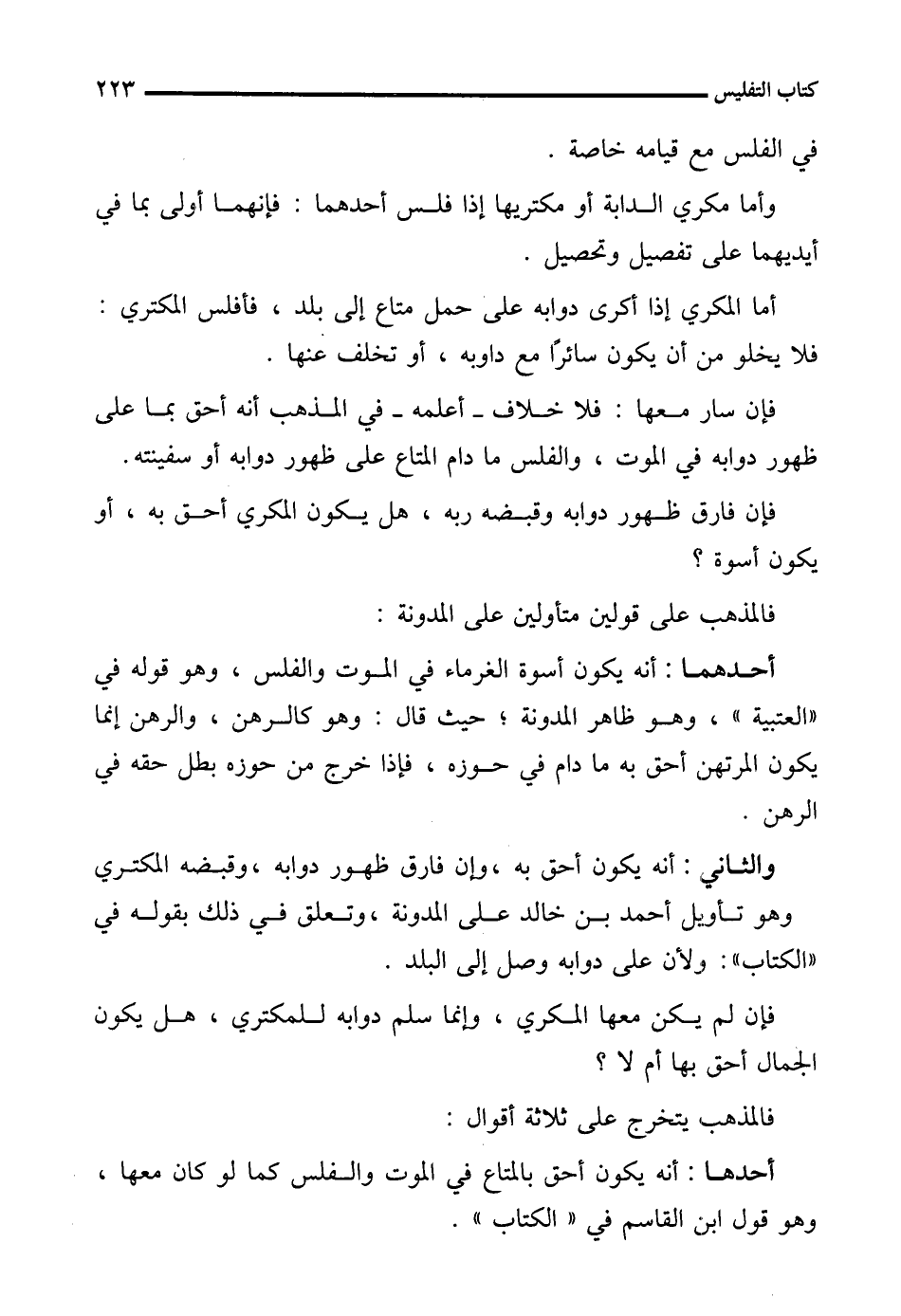 وأما مكري الدابة أو مكتريها إذا فلس أحدهما: فإنهما أولى بما في أيديهما على تفصيل وتحصيل.