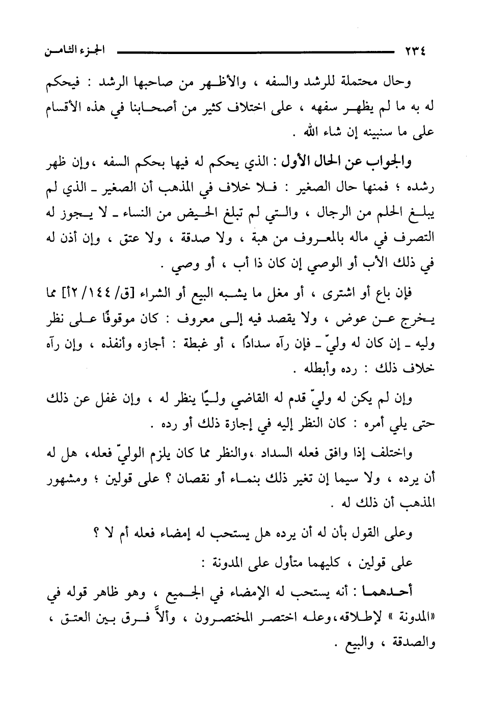 وحال محتملة للرشد والسفه، والأظهر من صاحبها الرشد: فيحكم له به ما لم يظهر سفهه، على اختلاف كثير من أصحابنا في هذه الأقسام على ما سنبينه إن شاء الله.