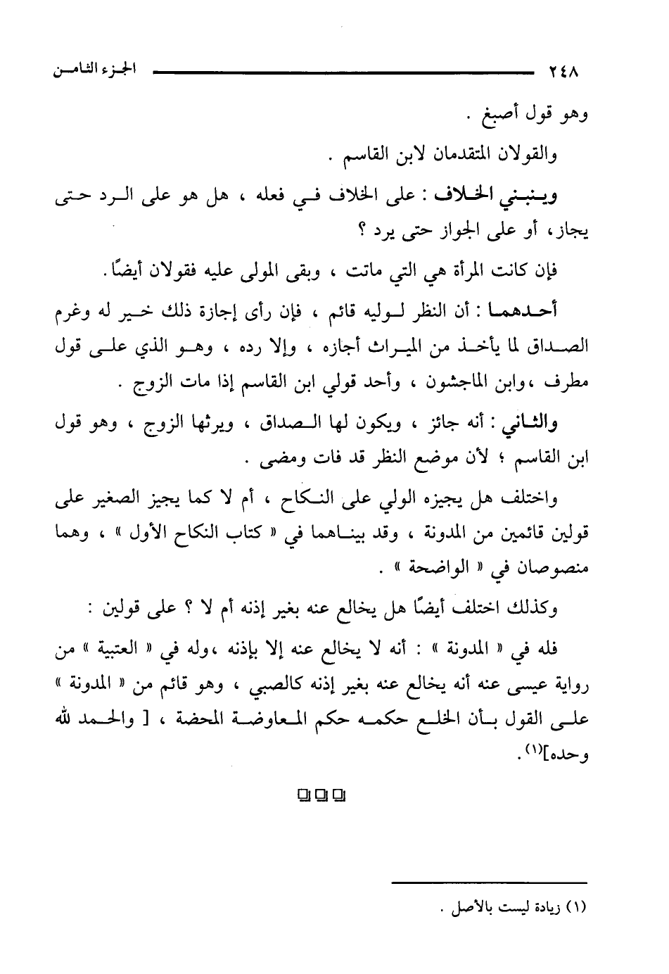 كتاب مناهج التحصيل ونتائج لطائف التأويل في شرح المدونة وحل مشكلاتها (اسم الجزء: 8)