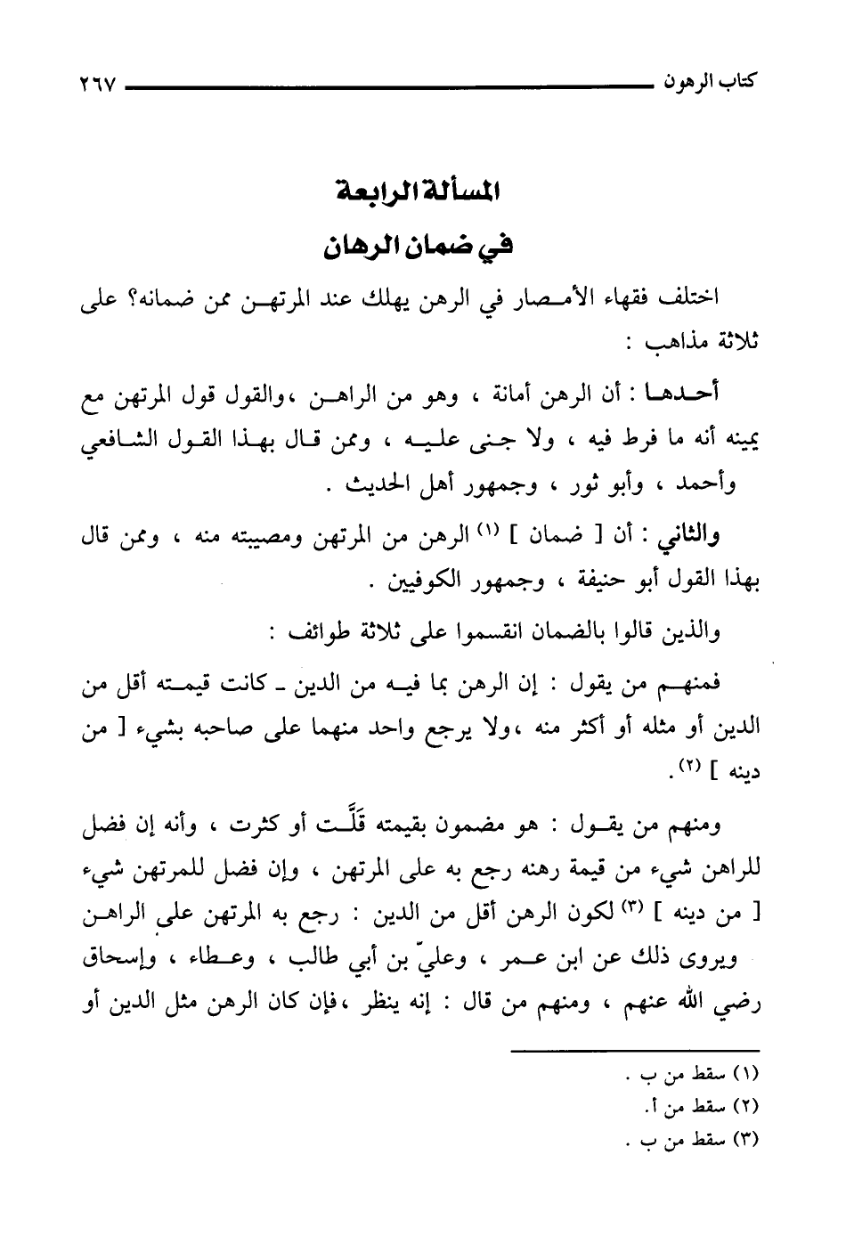 اختلف فقهاء الأمصار في الرهن يهلك عند المرتهن ممن ضمانه؟ على ثلاثة مذاهب: