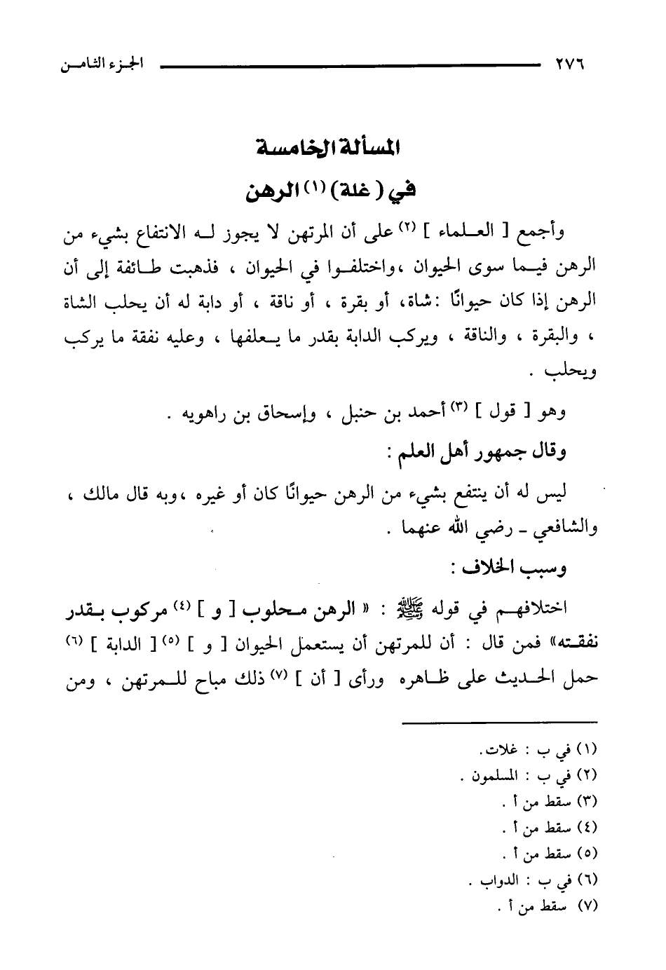 المسألة الخامسة في (غلة) (¬1) الرهن