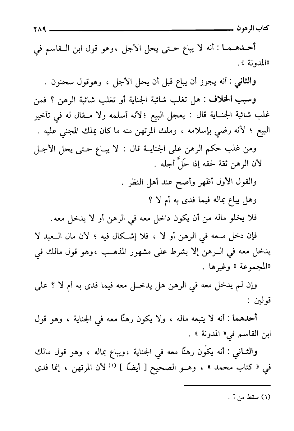 فإن دخل معه في الرهن أو لا، فلا إشكال فيه؛ لأن مال العبد لا يدخل معه في الرهن إلا بشرط على مشهور المذهب، وهو قول مالك في "المجموعة" وغيرها.