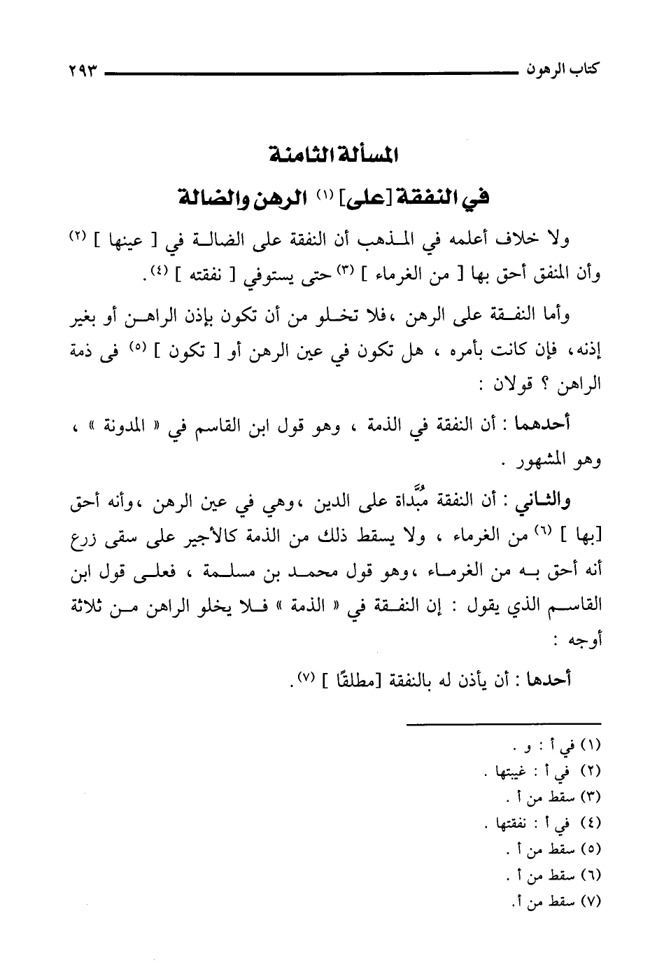 المسألة الثامنة في النفقة [على] (¬1) الرهن والضالة