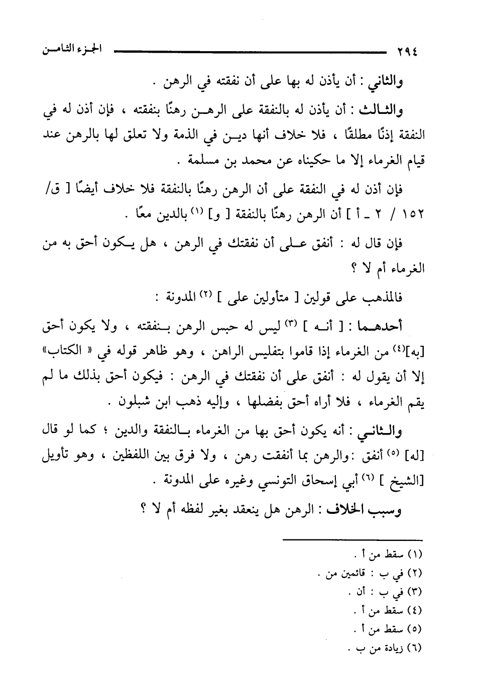 والثاني: أنه يكون أحق بها من الغرماء بالنفقة والدين؛ كما لو قال [له] (¬5) أنفق: والرهن بما أنفقت رهن، ولا فرق بين اللفظين، وهو تأويل [الشيخ] (¬6) أبي إسحاق التونسي وغيره على المدونة.