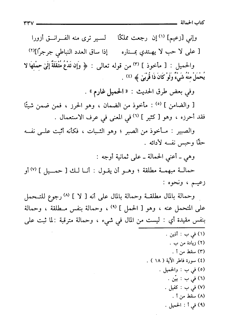 والحميل: [مأخوذ] (¬3) من قوله تعالى: {وَإِنْ تَدْعُ مُثْقَلَةٌ إِلَى حِمْلِهَا لَا يُحْمَلْ مِنْهُ شَيْءٌ وَلَوْ كَانَ ذَا قُرْبَى} (¬4).