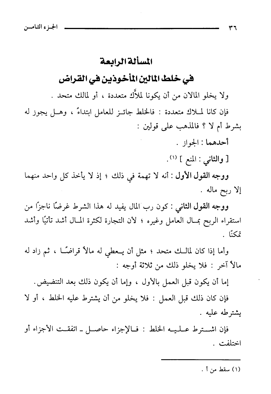 المسألة الرابعة في خلط المالين المأخوذين في القراض