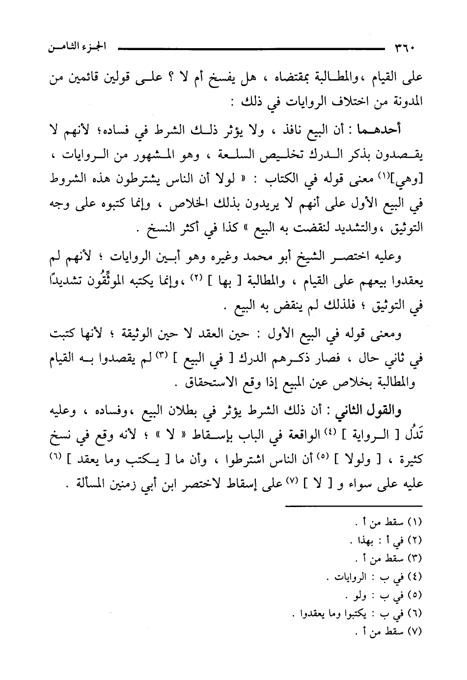 وعليه اختصر الشيخ أبو محمد وغيره وهو أبين الروايات؛ لأنهم لم يعقدوا بيعهم على القيام، والمطالبة [بها] (¬2)، وإنما يكتبه الموثِّقُون تشديدًا في التوثيق؛ فلذلك لم ينقض به البيع.