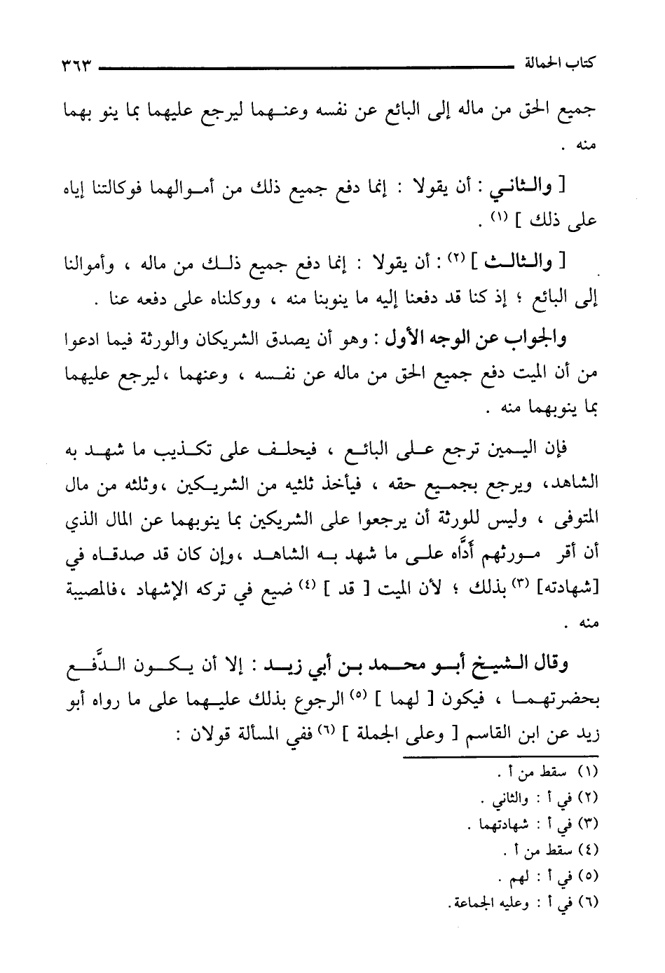 والجواب عن الوجه الأول: وهو أن يصدق الشريكان والورثة فيما ادعوا من أن الميت دفع جميع الحق من ماله عن نفسه، وعنهما، ليرجع عليهما بما ينوبهما منه.
