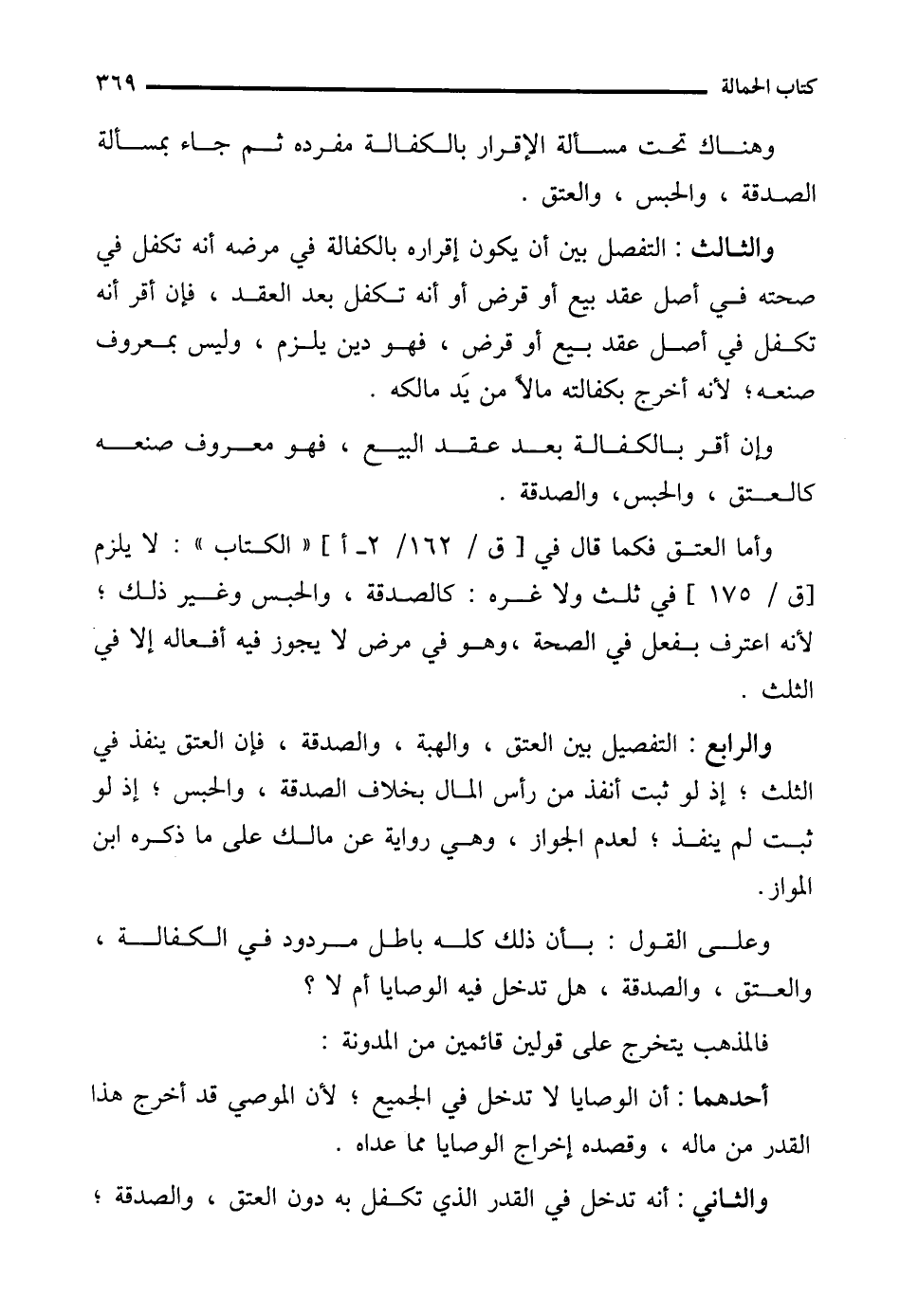 وهناك تحت مسألة الإقرار بالكفالة مفرده ثم جاء بمسألة الصدقة، والحبس، والعتق.