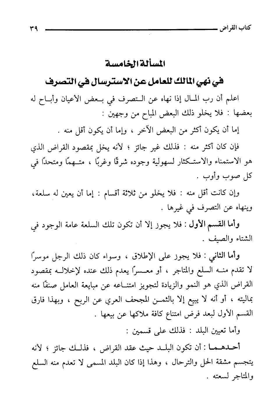 المسألة الخامسة في نهي المالك للعامل عن الاسترسال في التصرف