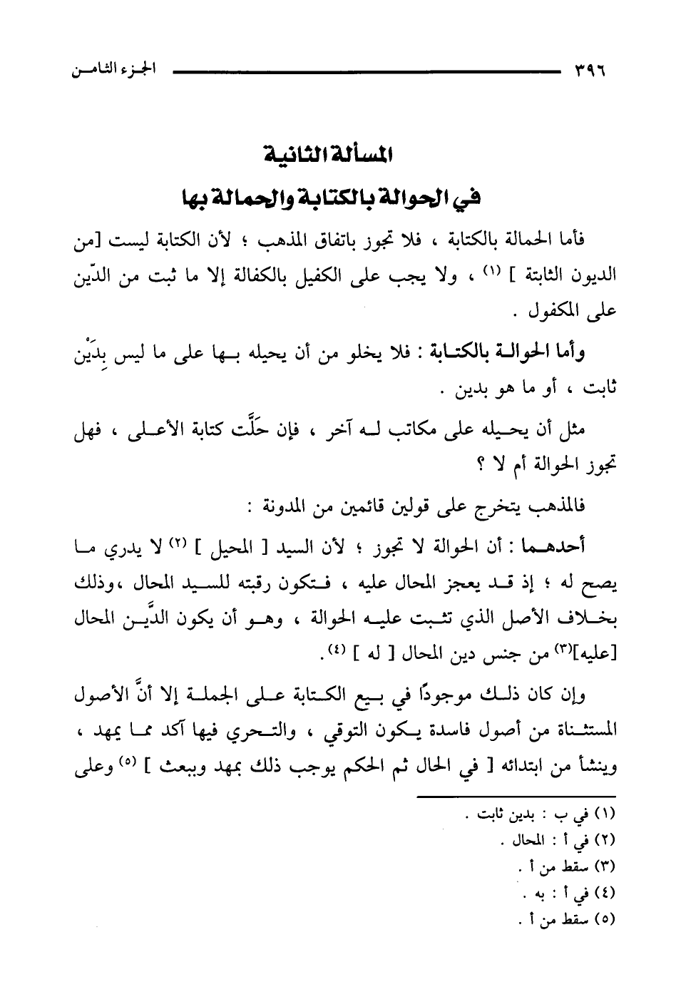 المسألة الثانية في الحوالة بالكتابة والحمالة بها