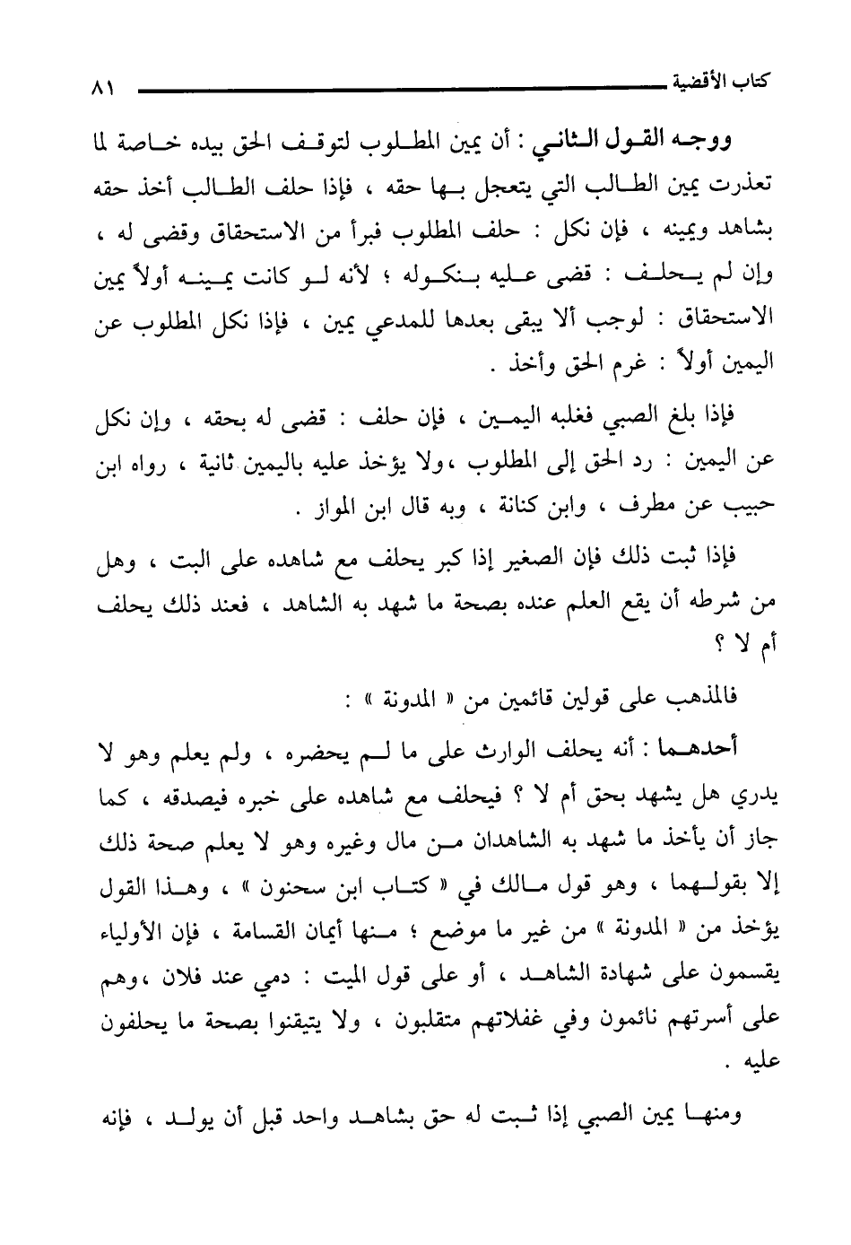 فإذا بلغ الصبي فغلبه اليمين، فإن حلف: قضى له بحقه، وإن نكل عن اليمين: رد الحق إلى المطلوب، ولا يؤخذ عليه باليمين ثانية، رواه ابن حيب عن مطرف، وابن كنانة، وبه قال ابن المواز.