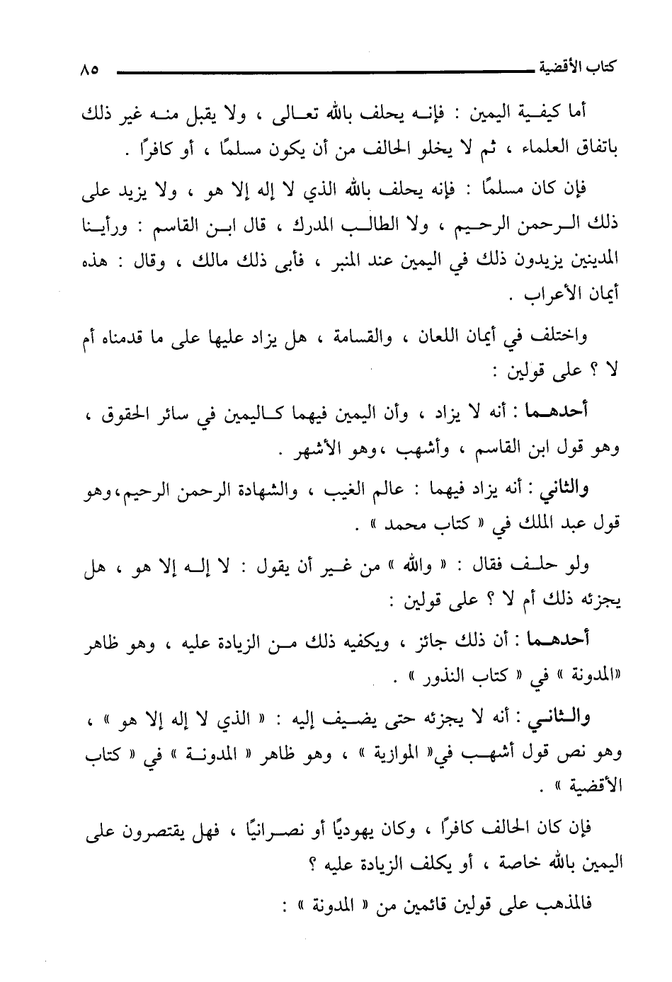 واختلف في أيمان اللعان، والقسامة، هل يزاد عليها على ما قدمناه أم لا؟ على قولين: