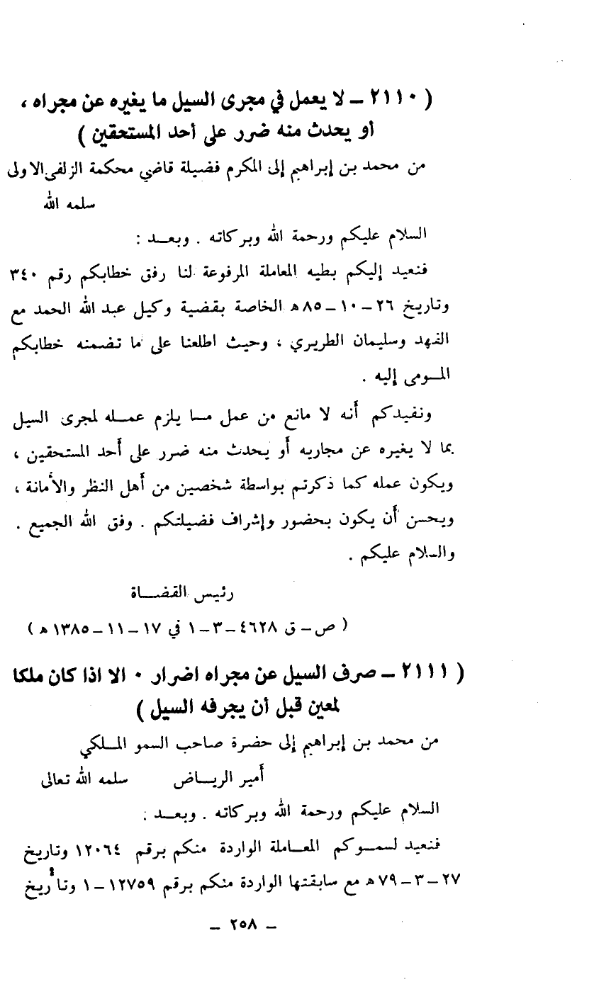 (2110 ـ لا يعمل في مجرى السيل ما يغيره عن مجراه، أو يحدث منه ضرر على أحد المستحقين)