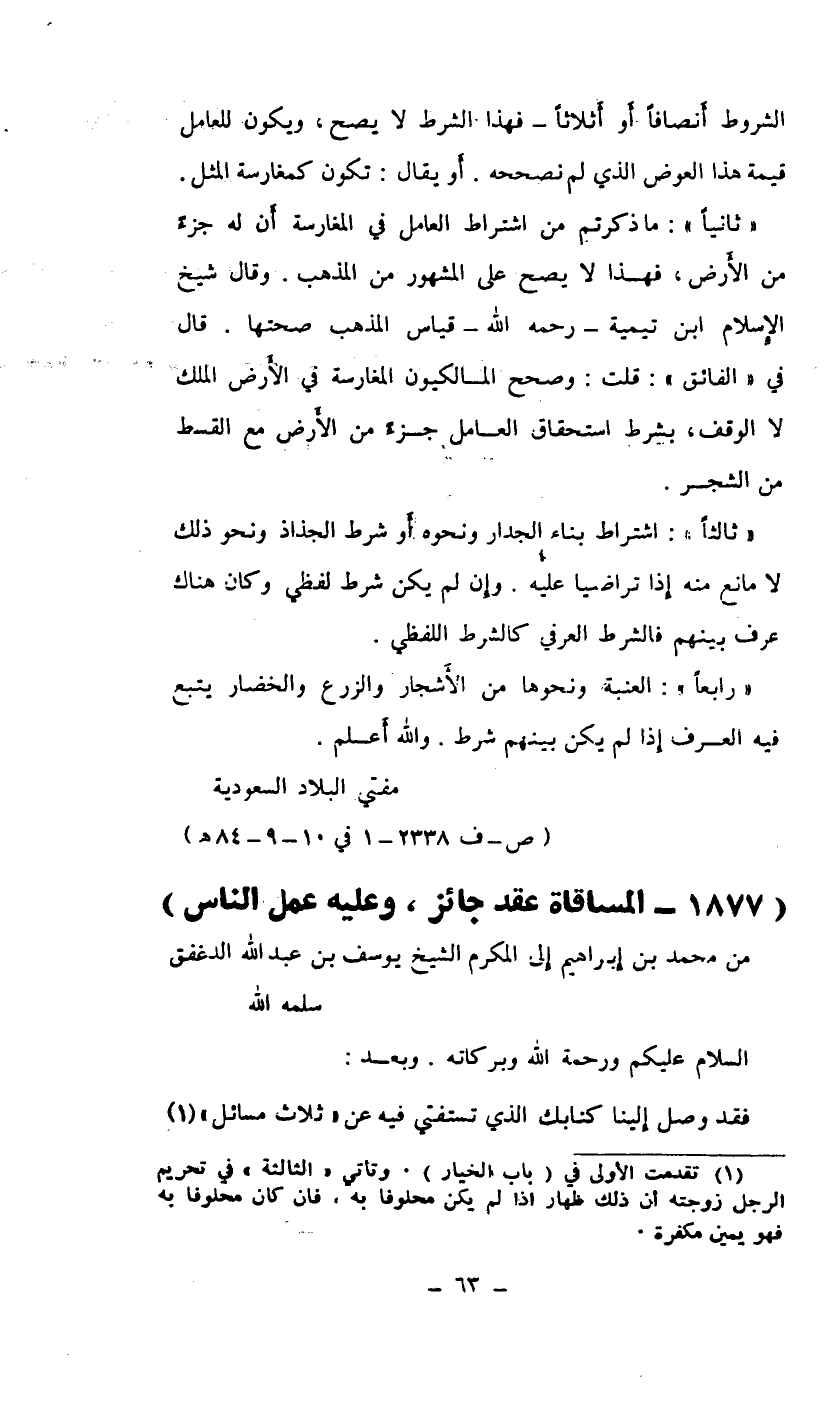 1877- المساقاة عقد جائز، وعليه عمل الناس